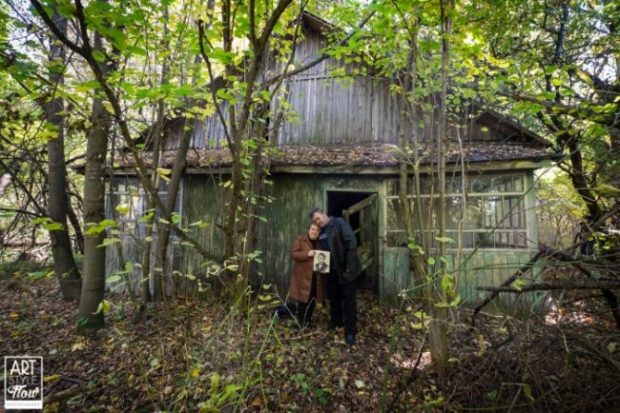 Portrait of Ivan and Olena, the parents of Anton (a friend of CFF who works at the power plant) outside his childhood home in a small village near Chernobyl. He found a perfectly perserved photo of himself as a child inside. It was an amazing experience.