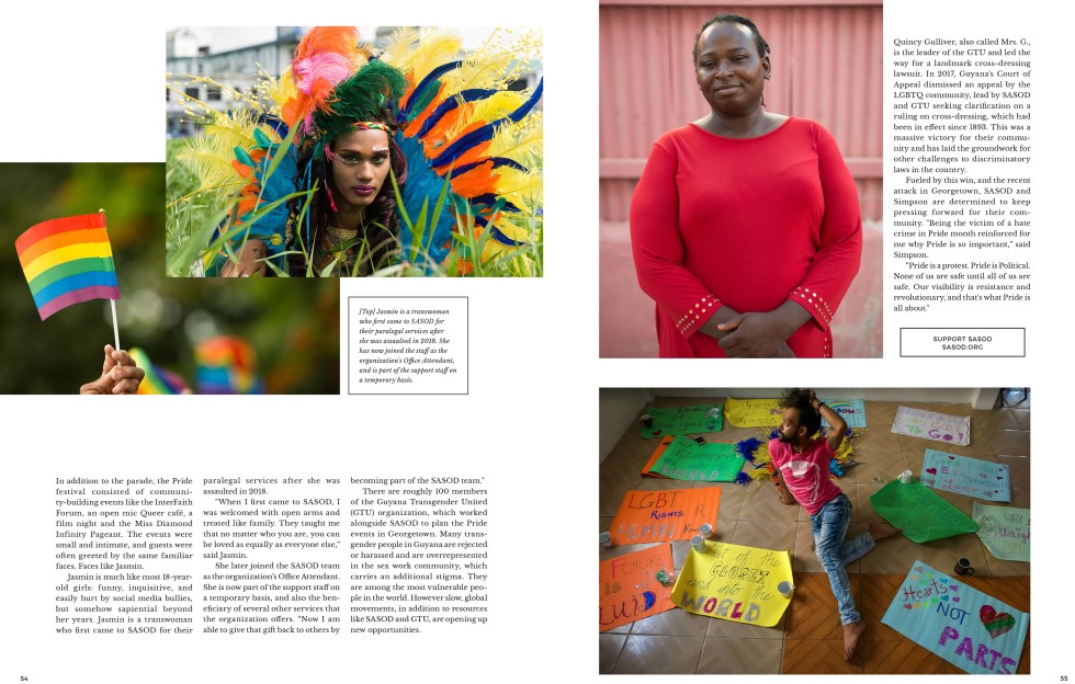 I received a wonderful gift today: the 14th issue of the Photographers Without Borders magazine! Not only did they select my image for the cover, but I also wrote the corresponding article in the four-page spreads. Equality and diversity are topics we are all fighting for now, and in this small English speaking country on the northeast coast of South America, the team at SASOD have been fighting for equality in Georgetown and throughout the country for years. They are leading change, educating allies and government leaders, and serving their communities. They believe real boundaries don’t exist.